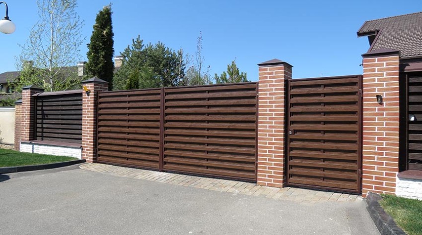 Tetapi, tentu saja, ciri utama pagar ini dibahagikan kepada jenis adalah bahan pembuatan dan arah pelat. Pertimbangkan jenis pagar louvered, bergantung pada lokasi bilah: