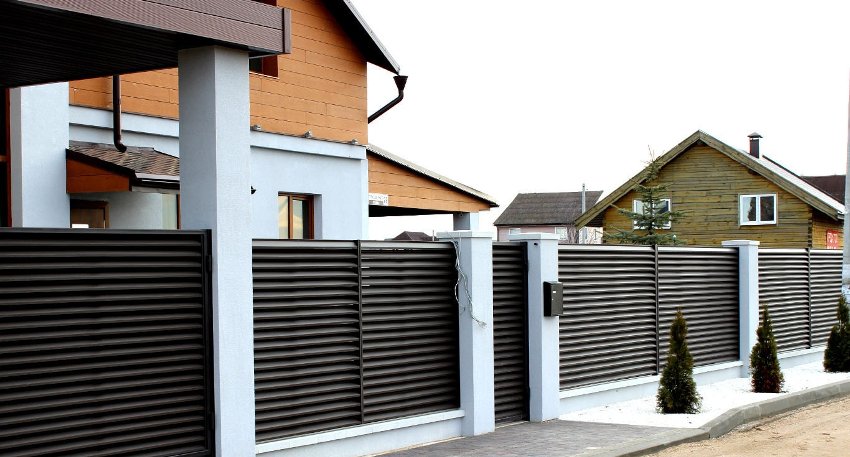 Lapisan, yang merupakan elemen utama jenis pagar ini, cenderung. Sebilangan reka bentuk memungkinkan untuk lereng piring di kedua arah. Dalam kes kedua, ini akan memudahkan penembusan cahaya matahari ke dalam laman web ini. Oleh itu, menjadi mustahil untuk menanam bunga dan tanaman lain di kawasan berhampiran pagar logam. Foto struktur ini membolehkan anda menghargai kelebihannya.