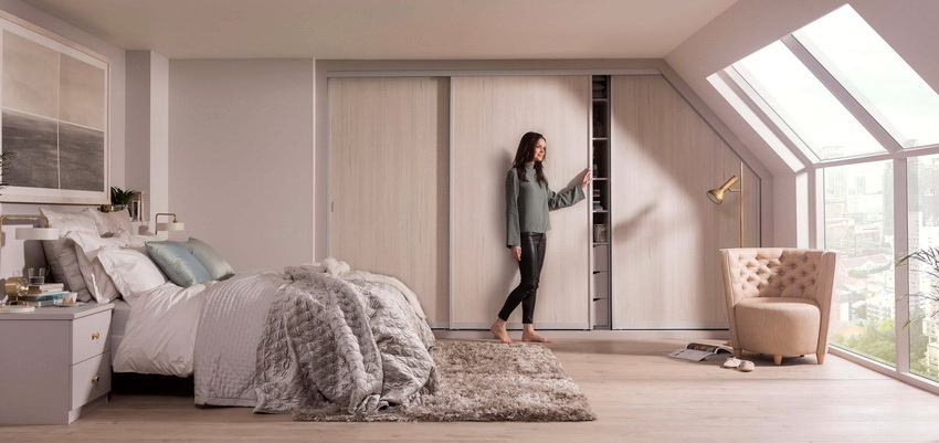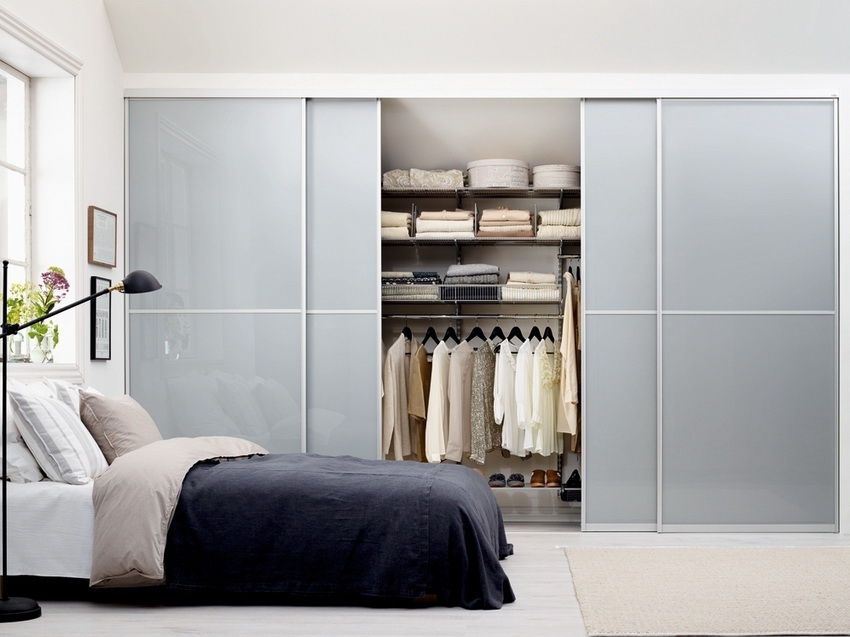 En garderobe kjøpt ferdig eller bestilt for et soverom er det mest passende alternativet for et lite rom, som lar deg bruke ledig plass så effektivt som mulig takket være en moderne skyvedørsdesign.