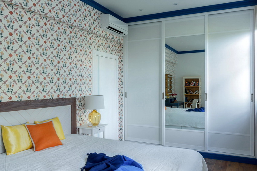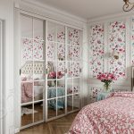 Det mest relevante alternativet er ramme eller innebygde garderober for soverommet i blå, gul, rosa, lysegrønn, lilla, beige og andre vårfarger. Fargen på strukturen skal være i harmoni med paletten til resten av møblene eller kombinert med gardiner, sengeteppe og teppe.