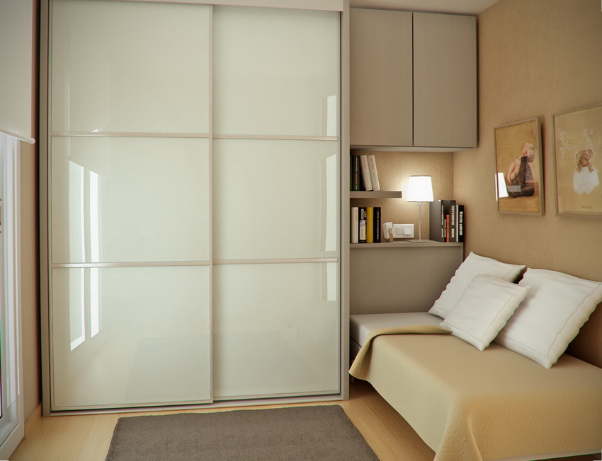 Innebygde garderober passer til et soverom selv om det er et lite rom, siden de ikke tar mye plass. Imidlertid kan slike møbler ikke flyttes. Derfor er det veldig viktig å umiddelbart bestemme stedet for installasjonen. Hjørnestrukturer er plassert i hjørnet av rommet, slik at du kan spare plass og skjule reparasjonsfeil.