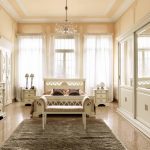 Et rom med hvite møbler kan dekoreres i mørke farger, som vil bli en kontrasterende bakgrunn og skape eleganse av linjer. Du kan legge til luftighet og vektløshet i rommet ved hjelp av lysflytende tyll av snøhvit farge. Hvis rommet er dekorert i lyse farger, bør møblene velges i beige eller kaffe nyanser.
