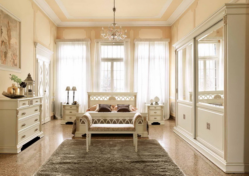 Nyttige råd! Med en fullstendig erstatning av det indre av rommet, bør du ta hensyn til ferdige sett, hvor en garderobe, en seng, nattbord og andre møbler er valgt i samme stil.