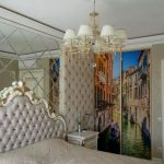 På grunn av den mangfoldige utformingen av fasaden, passer strukturen perfekt inn i ethvert interiør i rommet, og er det opprinnelige tillegget. En skyvegarderobe med speilet fasade lar deg visuelt øke rommet i rommet mens du dekorerer rommet. Maksimal effekt oppnås når strukturen er plassert langs veggen.