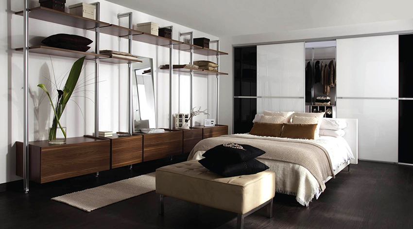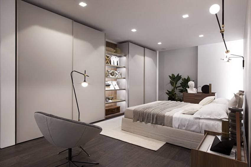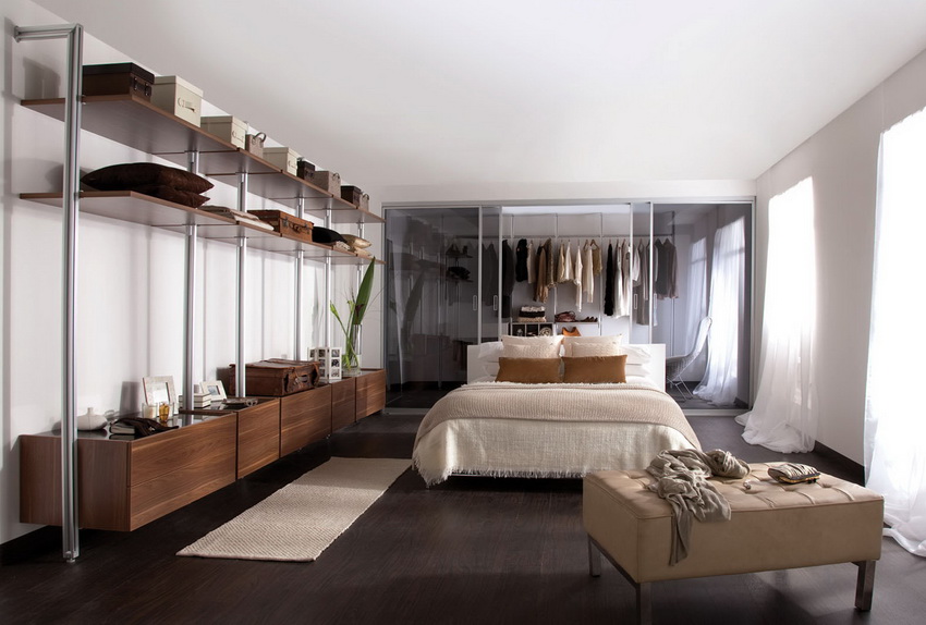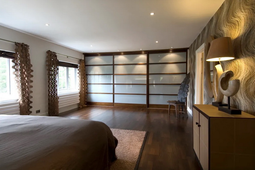 Den moderne utformingen av garderoben på soverommet - fotoideene gjenspeiler dette tydelig - kan vektlegges gunstig ved å bruke følgende løsninger: