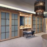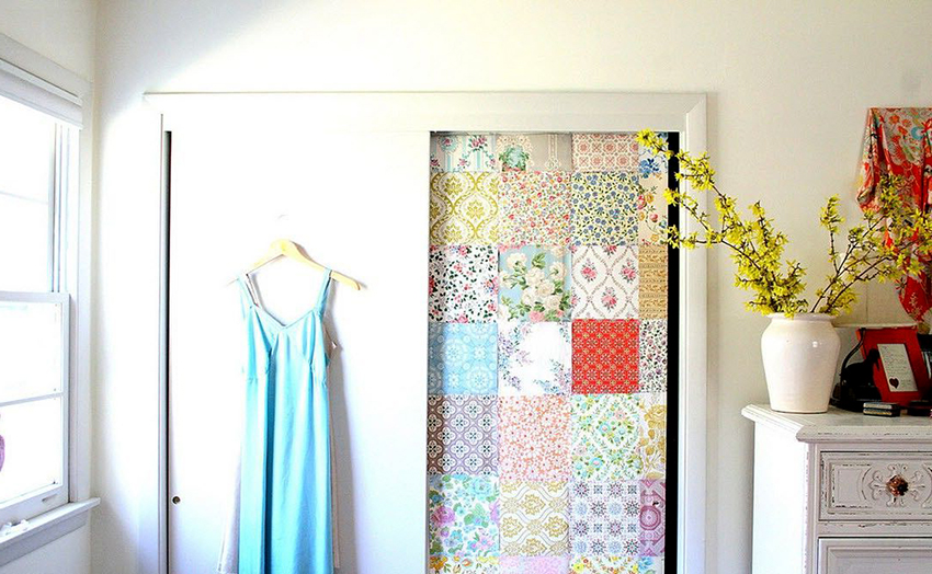 Utformingen av garderoben ligner en vegg, slik at produktet passer inn i landlige, Provence, høyteknologiske, loft, skandinaviske, minimalistiske og klassiske stiler. Et karakteristisk ornament eller mønster skapt på overflaten av fasaden vil understreke den særegne og unike egenskapen til den valgte retningen. Når du lager en garderobe i orientalsk stil for dører, kan du bruke eksotiske dekorative materialer i form av ekte lær, bambus eller rotting.