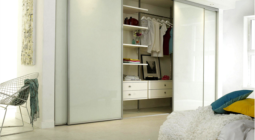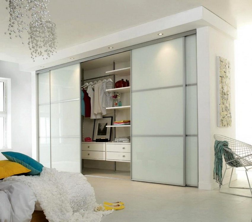 Konfigurasjoner av skyvedører på soverommet: fotoalternativer