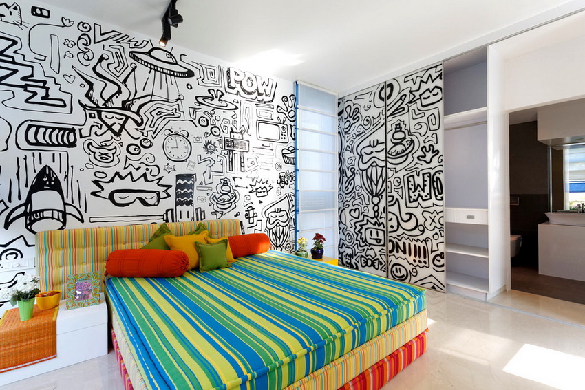 Nyttige råd! Med dette designet kan du skjule eventuelle feil i veggene i rommet.