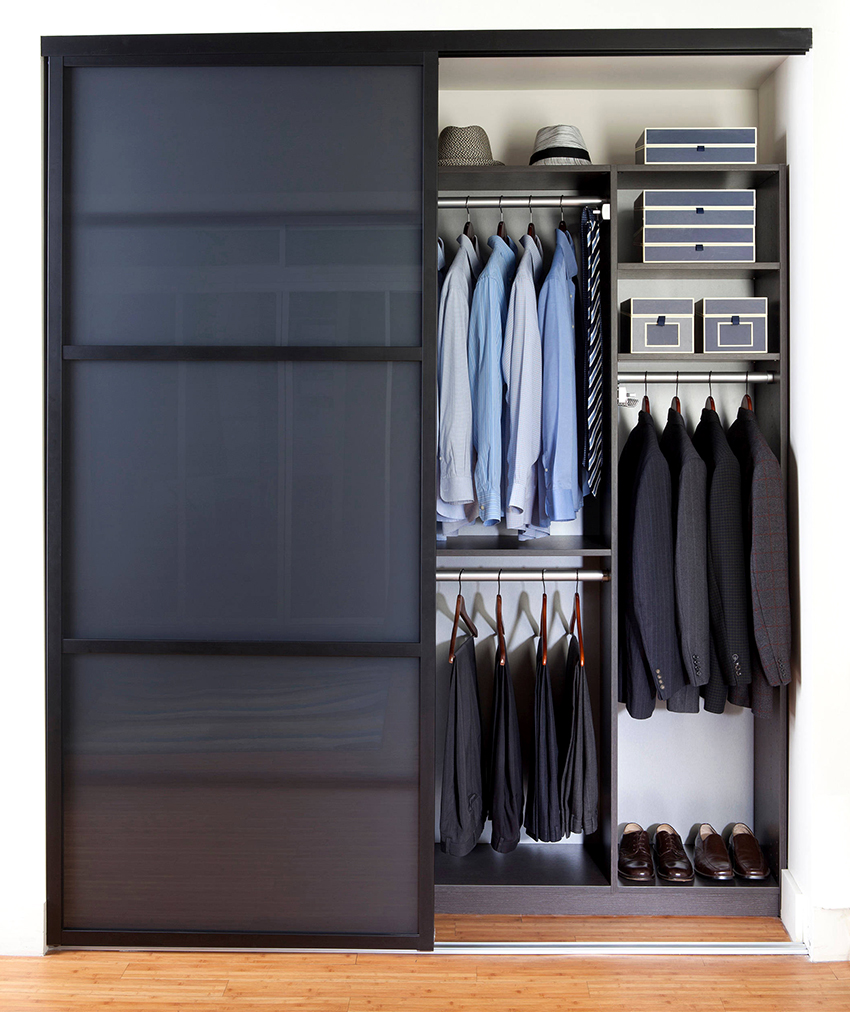 En skyvegarderobe kan ha følgende konfigurasjon: