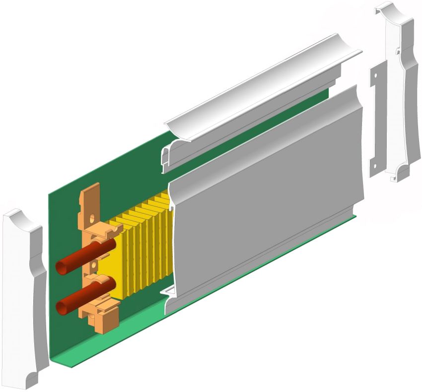 Uansett om det er et elektrisk apparat eller et vannapparat, utad har de samme design: en aluminiumsstripe som har en bredde på 3 cm. Samtidig kan høyden være veldig forskjellig fra 10 til 24 cm. Fargen og formen kan også være det samme det.