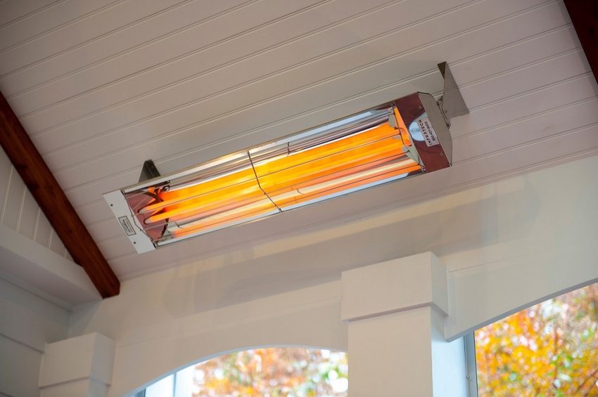 - sørg for å ta hensyn til vekten av strukturen når det gjelder å kjøpe et infrarødt takvarmeapparat med en termostat. Kundevurderinger hevder at settet må inneholde deler for oppheng for slike enheter, ellers tåler ikke taket en slik belastning. Ikke glem at varmeren ikke skal plasseres rett over soveområdet eller arbeidsplassen;