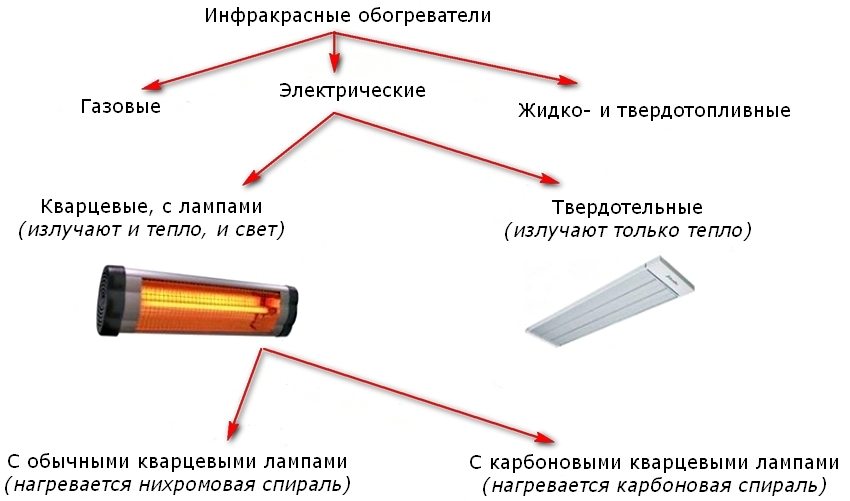 IR-varmeovner er også delt inn i grupper avhengig av energibæreren som brukes: