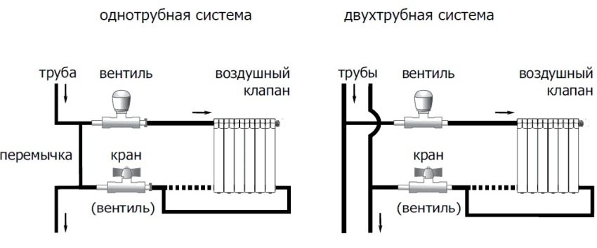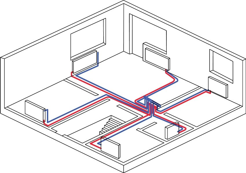 - et system med radiatorer koblet til hverandre ved hjelp av rør i serie eller parallelt. Den er koblet til kjelekretsen.Siden væsken i stor grad utsettes for termisk ekspansjon, er det alltid en ekspansjonstank i systemet, som kan være et eget element eller være en del av kjelen;