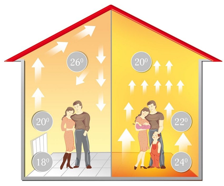 Når romtemperaturen varmes opp med 1 grad, overføres varme fra gulvoverflaten til luften: