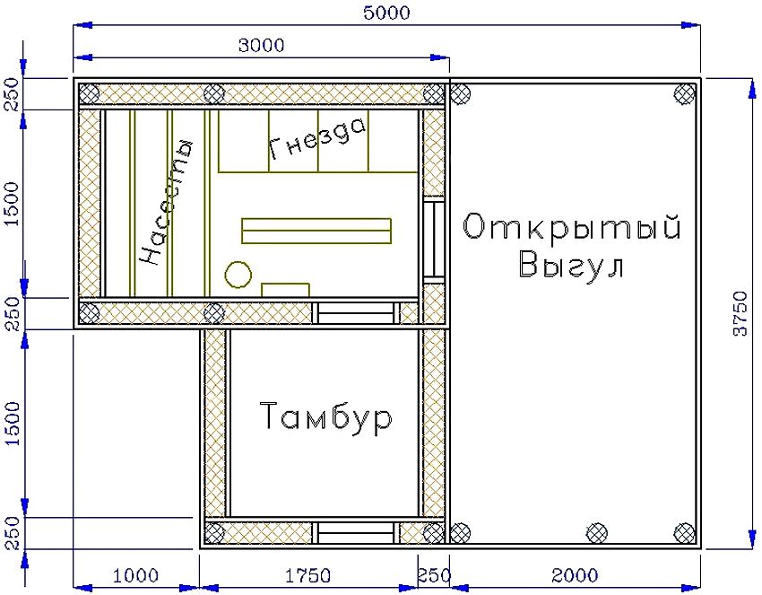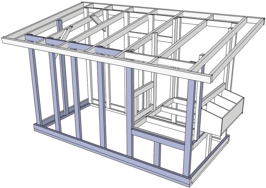 I følge tegningene, gjør-det-selv-bilde av kyllingekopper, er det klart at en rammestruktur blir reist på grunnlag av et søylefundament. Dens særegenhet ligger i enkelheten og den høye konstruksjonshastigheten, noe som gjør konstruksjonen av et kyllingekjøp ikke mye vanskeligere enn å kjøpe et kyllingeko for 10 kyllinger ferdiglagde.
