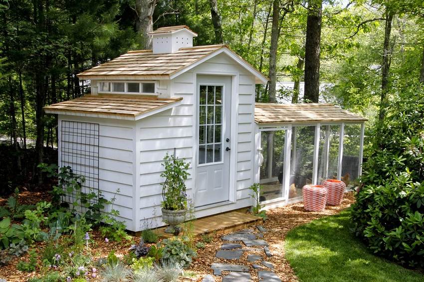 Etter at hovedkonstruksjonen er fullført, er det nødvendig med etterarbeid, takket være at kyllinghuset kan bli en dekorasjon av hagen din