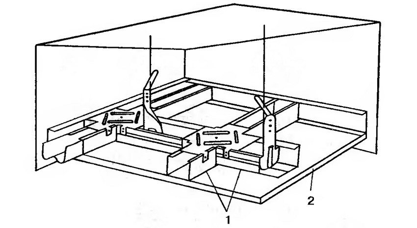 Installasjon av profiler og kleshengere. I veggene, langs den markerte linjen, bores hull for dybler med et trinn på ca 40 cm og føringsprofiler er faste.