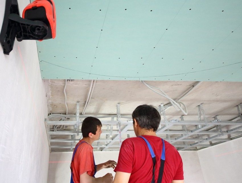 Installasjon av en ramme for et tak i gipsplaten i hallen: bilde av scenene