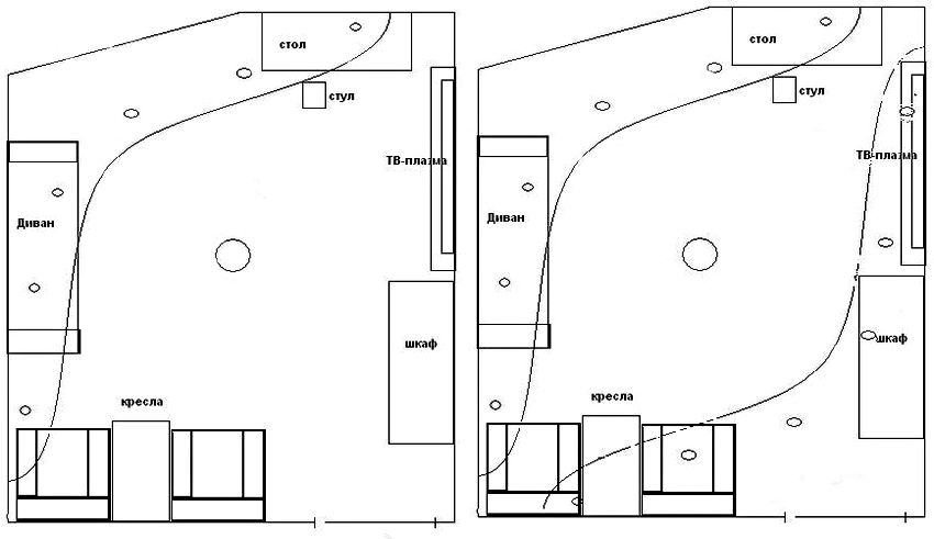 - i nærvær av tak av gipsplater i rommet, kan enhver form for belysning organiseres.