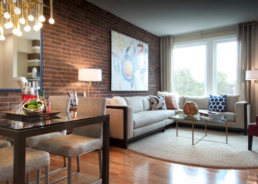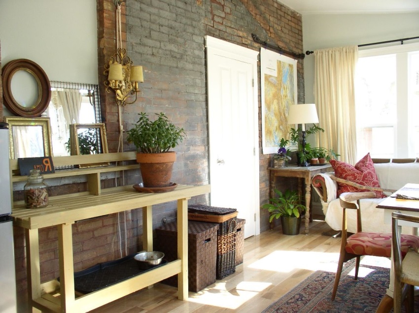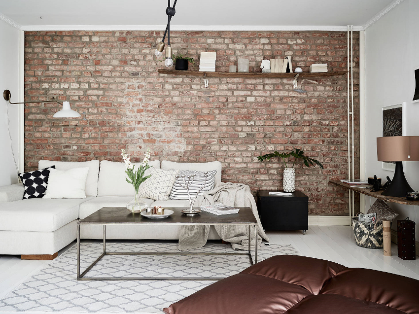 Utformingen av leiligheten, i det indre som det er en murvegg, til tross for den tilsynelatende ruheten, er vellykket brukt av dekoratører. Etterbehandling i form av naturlige eller motstående murstein lar deg skape en kontrast i rommet, gi det et eksklusivt og naturlig utseende, samt tiltrekke oppmerksomhet. I tillegg kan en dekorativ murvegg brukes som base for en rekke moderne stiler.