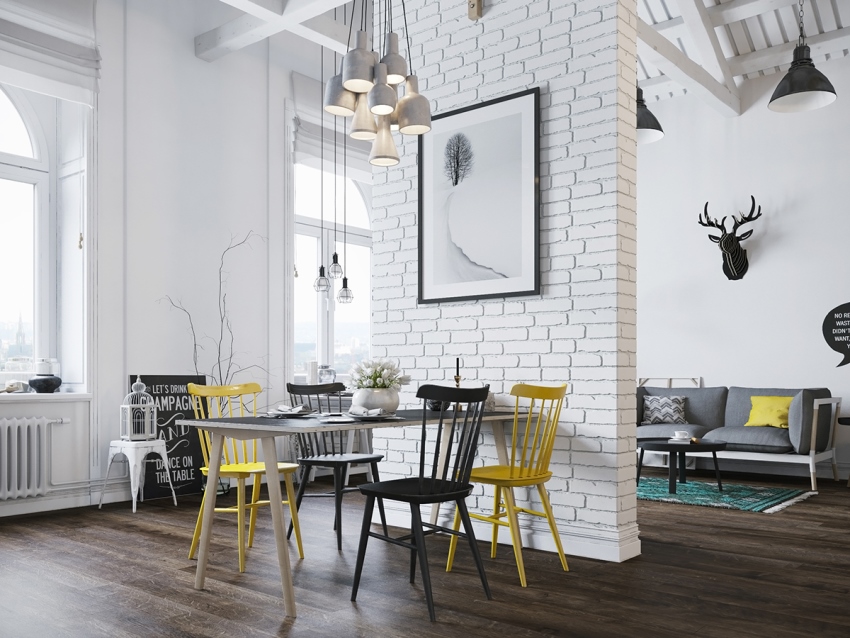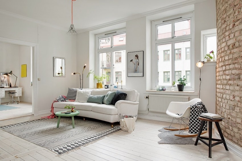 Nyttige råd! Det anbefales å bruke dekorasjon i form av et fragment for å skape et interiør i skandinavisk stil.