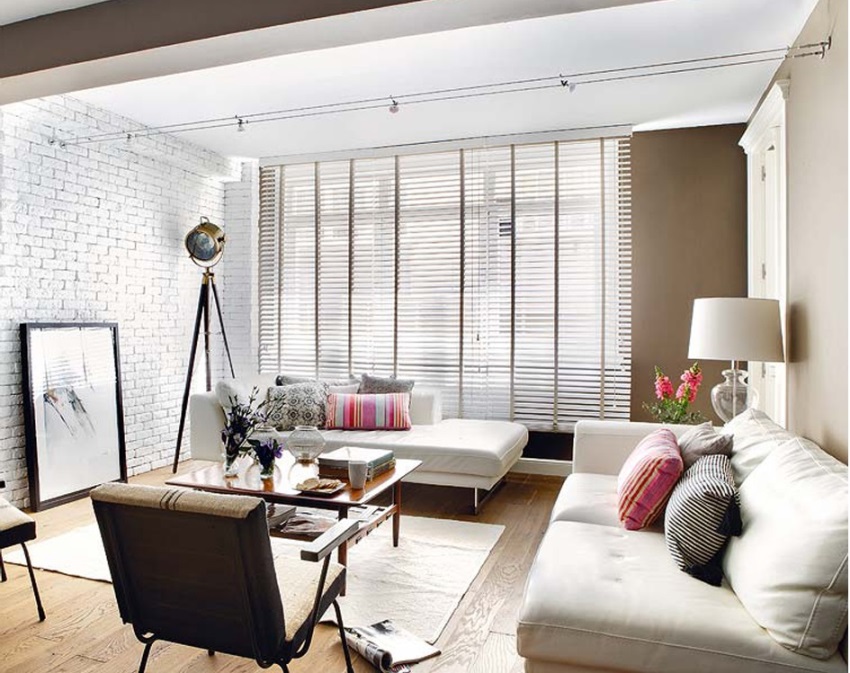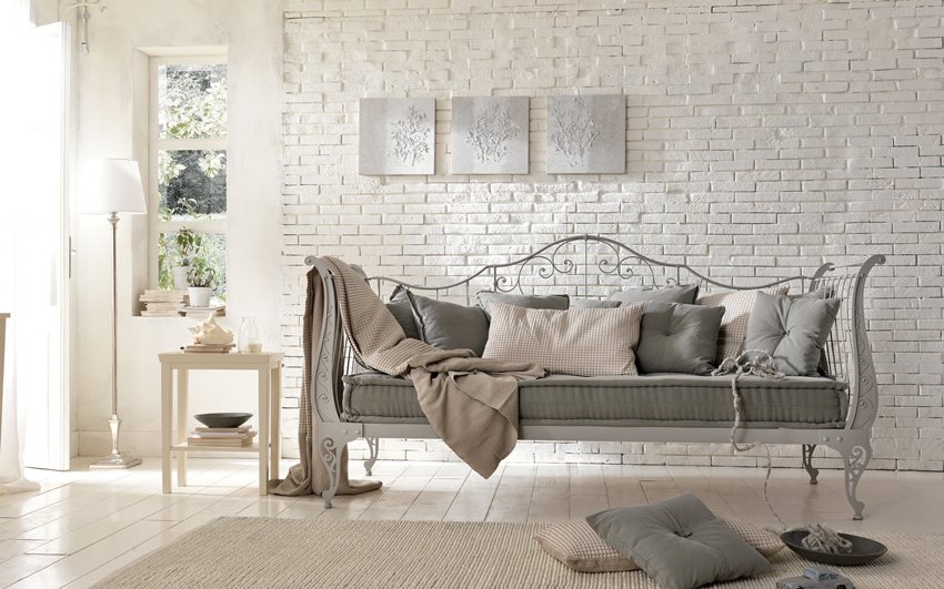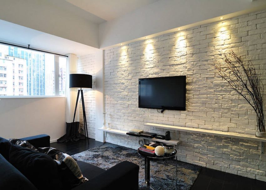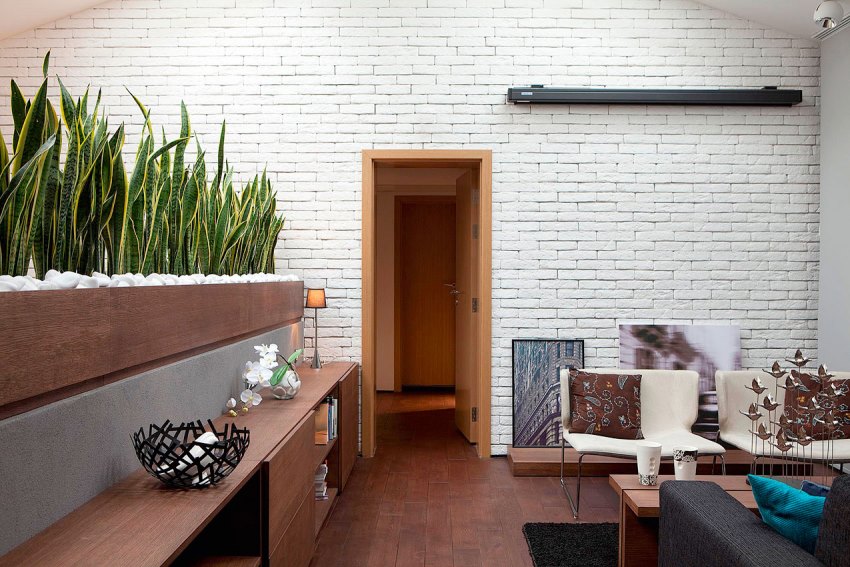 Hvitt brukes oftest i stiler som skandinavisk og minimalisme. I begge tilfeller kan bruken av en lett murvegg berike den diskrete innredningen i rommet med minimale midler. I dette tilfellet er det ønskelig å frata miljøet for farge, for ikke å overbelaste den visuelle oppfatningen av rommet.