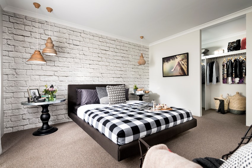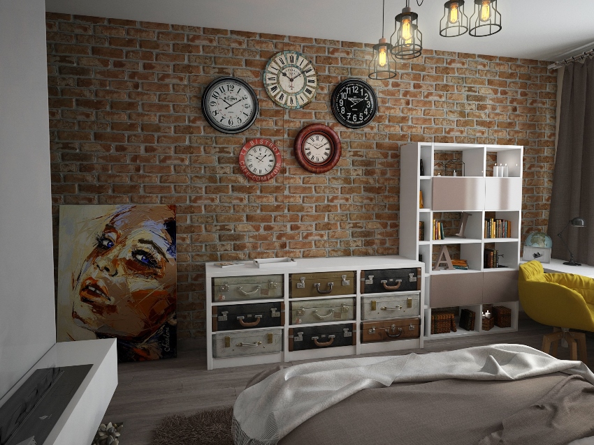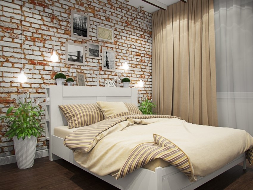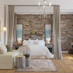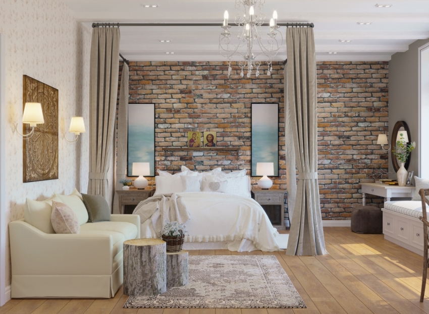 Murstein dekorasjon vil være passende på soverommet. Hvit mur vil understreke den moderne stilen på toalettrommet, samtidig som det gir rommet sjarm og letthet. En murvegg i det indre av en to-nivås leilighet eller studio vil se spesielt imponerende ut. Dette elementet kan utformes i form av en bue, som vil bli installert i stedet for inngangsdøren til fritidsrommet. Murvegger er egnet for Provence, Loft, Country, Classic og skandinaviske soverom.