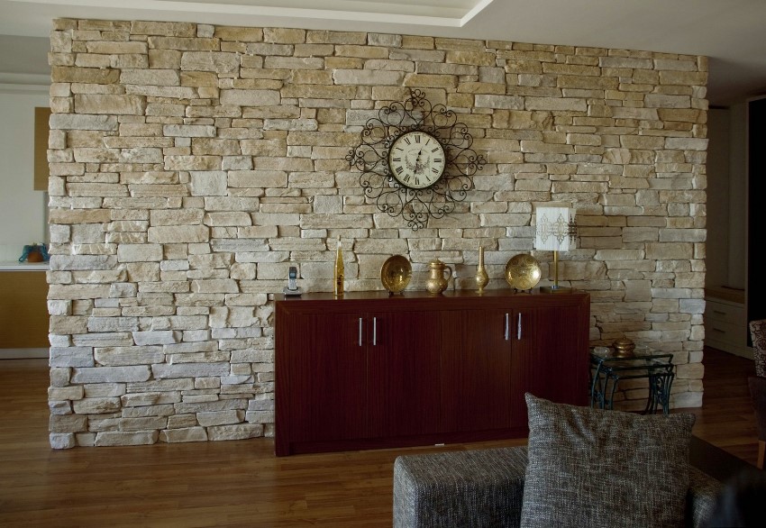 I en stue kan en murvegg brukes som bakgrunn for møbler, delikate apparater og dekorativt tilbehør. Mange designere bruker peis for å skape en koselig, behagelig og varm atmosfære i rommet. I dette tilfellet kan interiøret suppleres med en håndlaget murvegg laget av gips eller dekorative gipsstein.