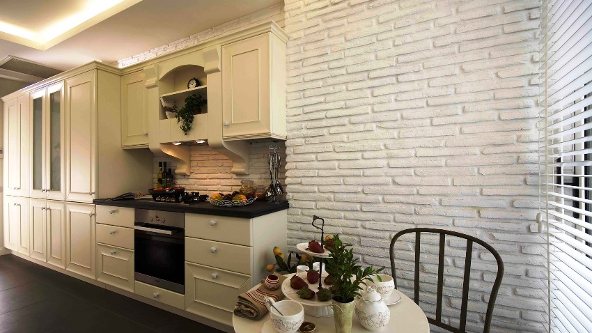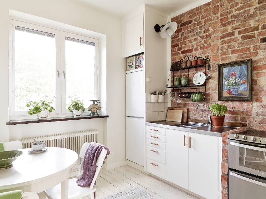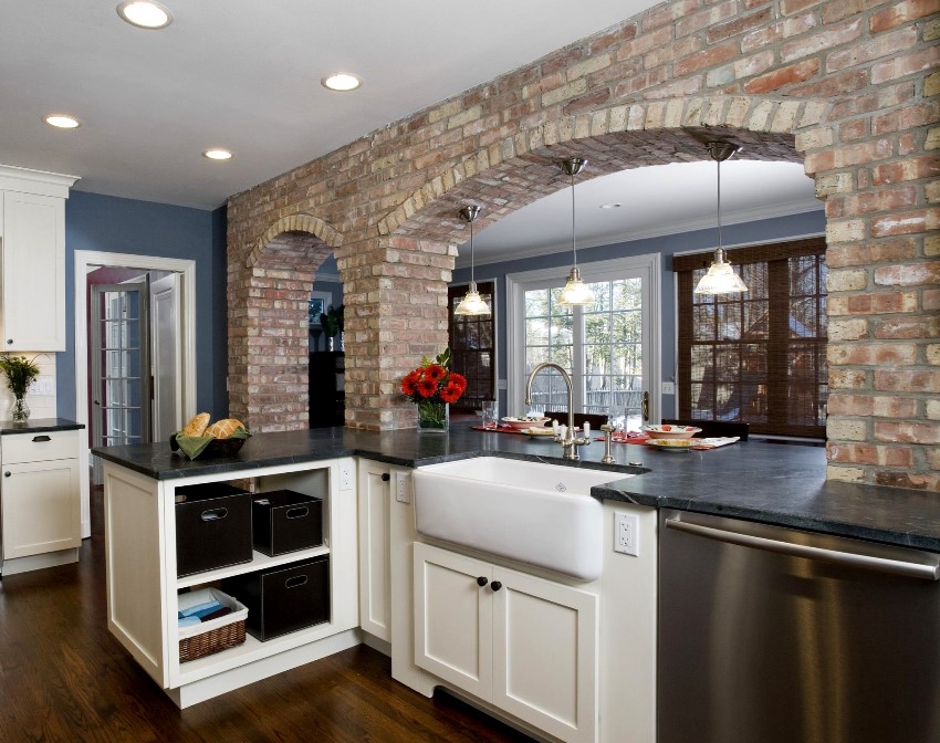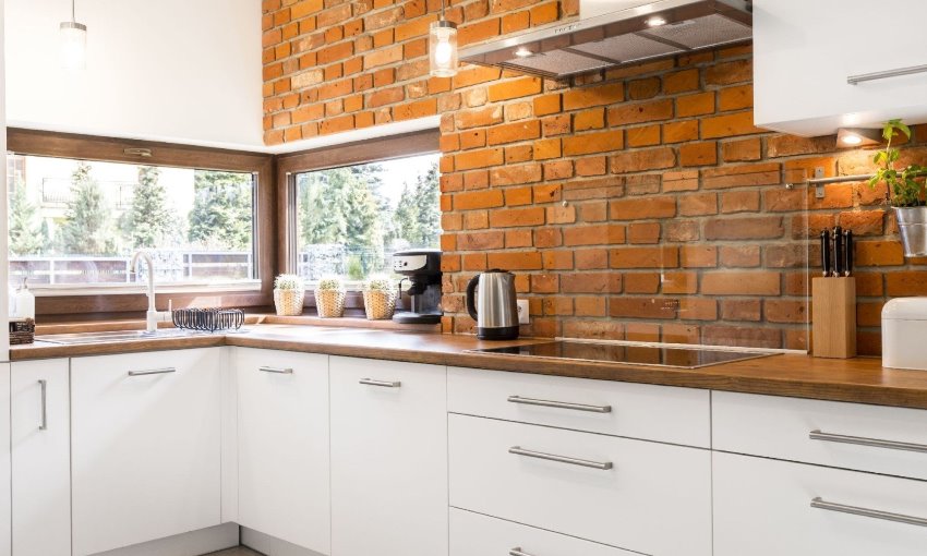 Hvordan bruke murstein i det indre av kjøkkenet og badet