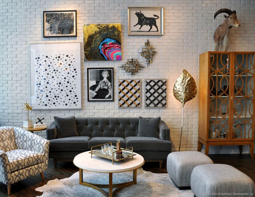 For å velge en egen del av rommet, som har den viktigste semantiske belastningen, kan du dekorere hele overflaten med en murstein