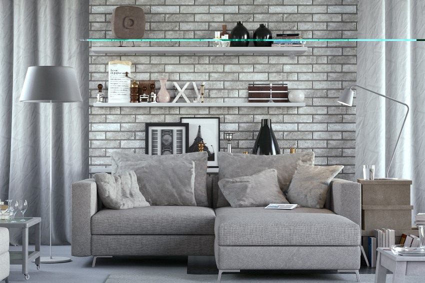 Fargen på kunstige murstein i interiøret kan være hvilken som helst: