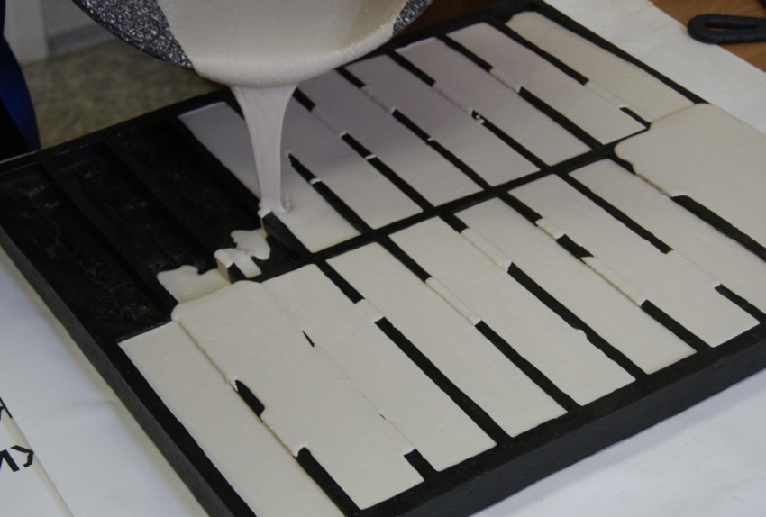 Etter å ha identifisert de viktigste designpunktene, kan du begynne å lage et etterbehandlingsmateriale for å simulere mur. For å lage murstein trenger du en spesiell helleform og en fargestoff. Eksperter anbefaler å bruke gjennomsiktig lakk og mursteinpuss til dette. Du kan kjøpe en polyuretanpotteform eller lage din egen av plast. Det viktigste er at den har riktig størrelse og form. Og størrelsen på mursteinene kan være annerledes, så lenge de forblir rektangulære.