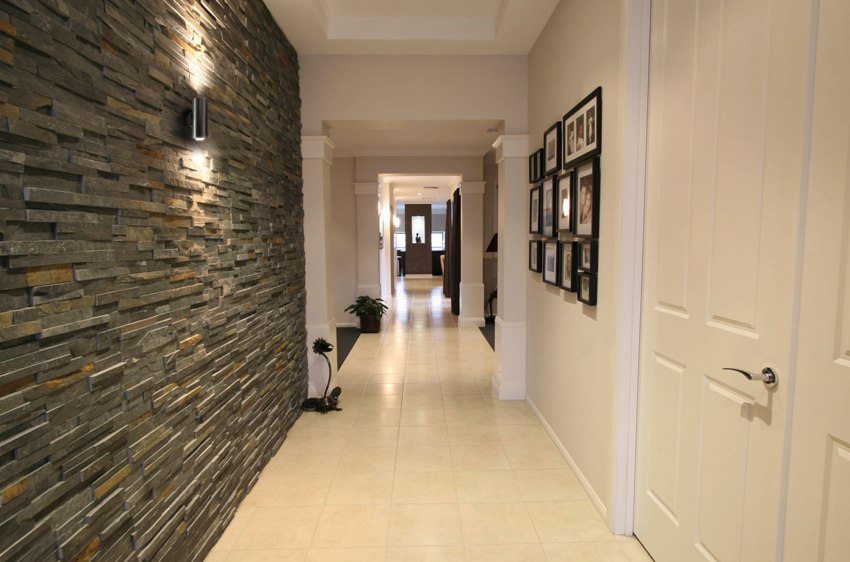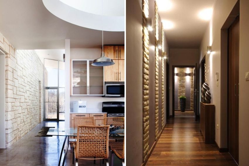 Dekorativ stein i det indre av gangen. Bilder av interessante utførelser