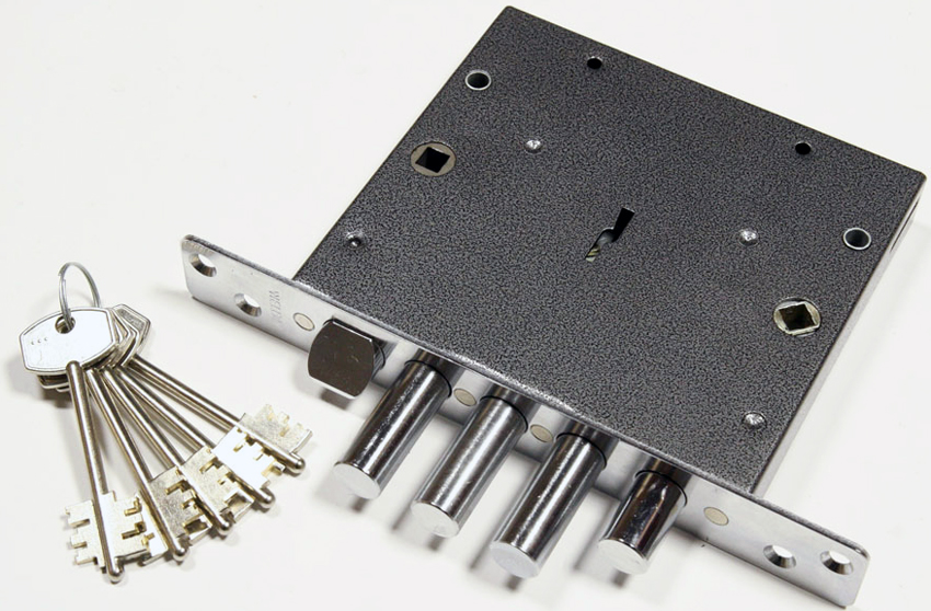 Les mécanismes à broches avec clés perforées offrent un degré de sécurité plus élevé. En vente, vous pouvez trouver des appareils qui appartiennent aux classes 2, 3 et 4 de résistance à l'ouverture. Pour augmenter la sécurité, ils sont montés sous des revêtements blindés spéciaux.