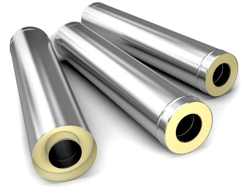 Pour la fabrication de tuyaux sandwich pour cheminée, un alliage spécial et un acier résistant à la chaleur sont utilisés, dont l'épaisseur est de 0,5 à 0,6 mm. En raison de la résistance du matériau aux attaques chimiques agressives et à la condensation, les tuyaux en acier inoxydable peuvent être utilisés pour les cheminées en combinaison avec tout type d'équipement de chauffage. La principale exigence est de sélectionner la nuance d'acier exacte pour un appareil particulier.