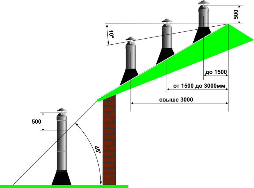 Quelle doit être la hauteur du tuyau de cheminée? Il existe des normes pour la hauteur des cheminées par rapport au toit, aux bâtiments adjacents, aux fenêtres, aux portes, aux conduits de ventilation. Les principaux sont appliqués aux cheminées, quels que soient leur conception et l'équipement de chauffage utilisé.