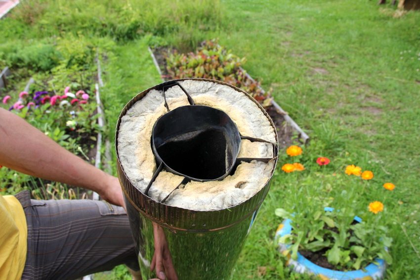 Vous pouvez acheter des tuyaux galvanisés pour une cheminée de type sandwich en deux versions. Dans l'un d'eux, les deux tuyaux (externe et interne) sont en galvanisé, mais il convient de noter qu'une telle structure peut se déformer à des températures supérieures à 450-500 ° C. Une autre option est lorsque le contour intérieur de la structure est en acier inoxydable et le contour extérieur en acier galvanisé. Dans ce cas, le tuyau extérieur a une épaisseur de 1 mm, pour le tuyau intérieur 0,5 mm suffit.