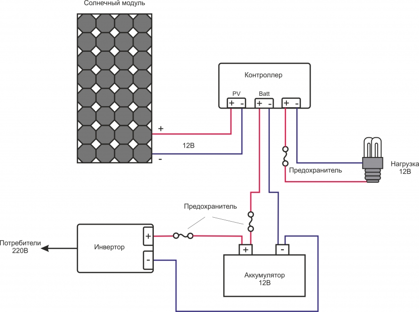 Pomocna rada!Aby zapobiec zwarciu między obciążeniem a poszczególnymi ogniwami akumulatora, należy zainstalować bezpieczniki.