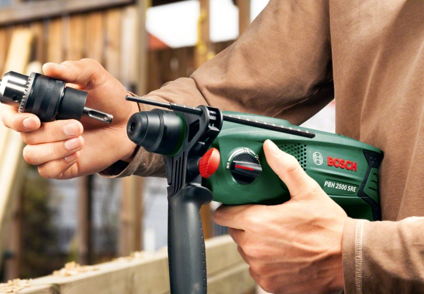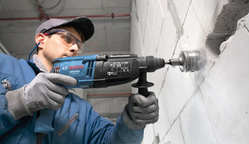 Przede wszystkim musisz przygotować dziurkacz. To urządzenie jest potrzebne do demontażu starego okablowania i uporządkowania nowych kanałów (w razie potrzeby). Aby pracować, musisz kupić kilka załączników na wiertarkę udarową: wiertło do rozdrabniania ścian betonowych o przekroju 16-20 mm, wiertłem koronowym 90-100 mm i dłutem 25-30 mm.