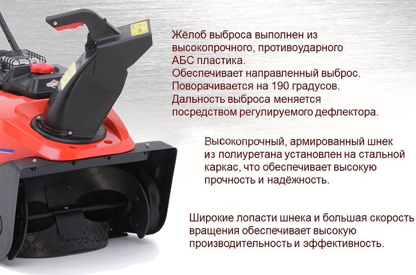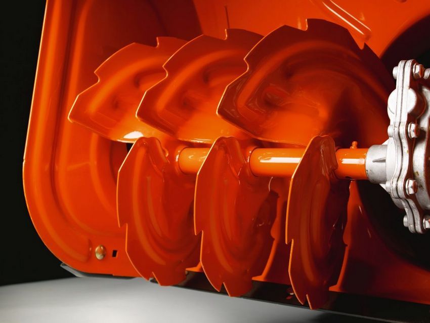 Pomocna rada! Podczas oczyszczania terenu z lodu, wysokich zasp i śniegu duże cząsteczki dostające się do wnętrza mechanizmu mogą zepsuć plastikową rynnę. Dlatego eksperci zalecają kupowanie modeli ze wzmocnionymi częściami wykonanymi z metalu.