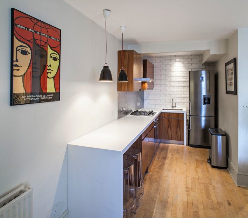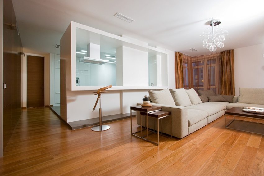 Kupujący małe mieszkanie stara się je przekształcić tak, aby było piękne i funkcjonalne. Dlatego wielu łączy kuchnię i salon w jednym pomieszczeniu. Jednocześnie w celu wydzielenia strefy gotowania często stosuje się kuchnie z barem.Zdjęcia projektu takiej konstrukcji pozwalają zrozumieć, jak to działa. W przypadku małego pokoju lepiej jest używać jasnych kolorów. Wizualnie zwiększą powierzchnię kuchni.