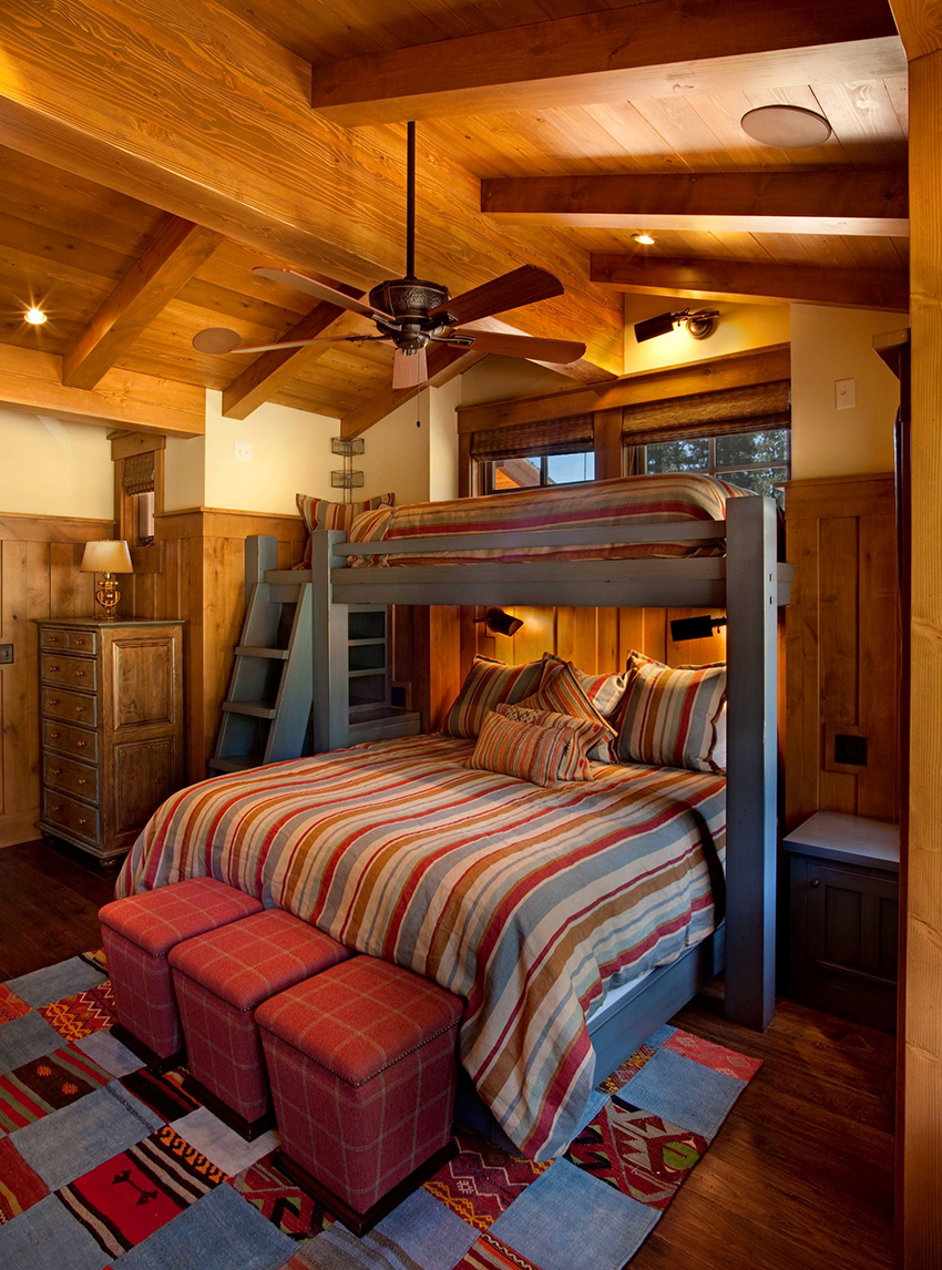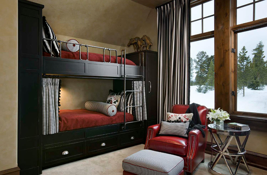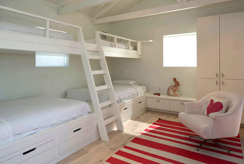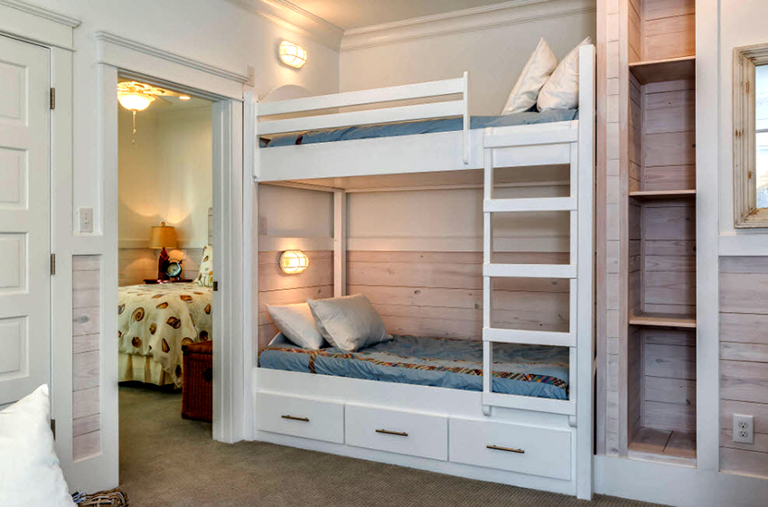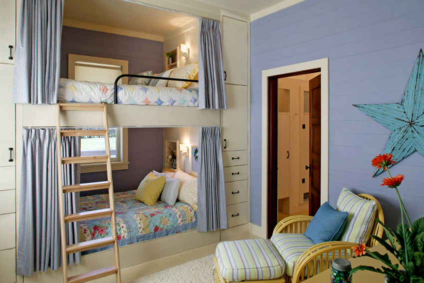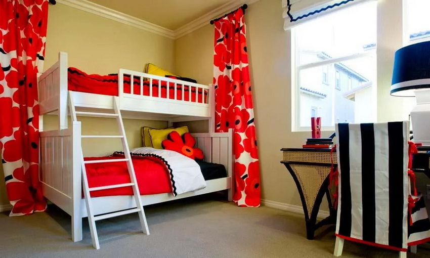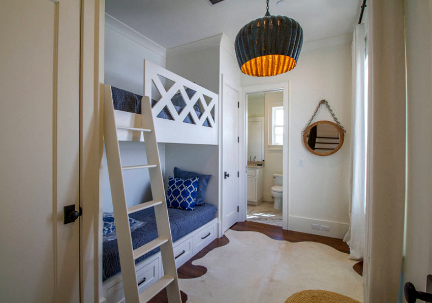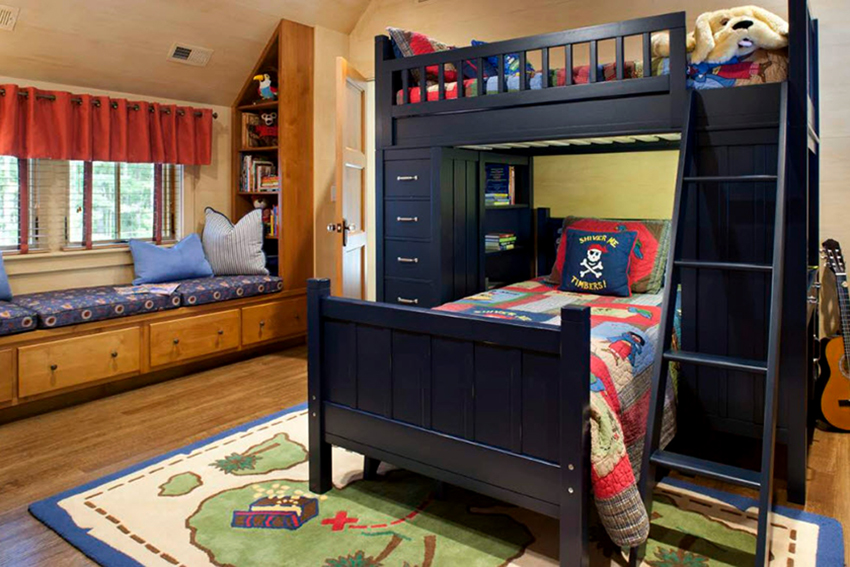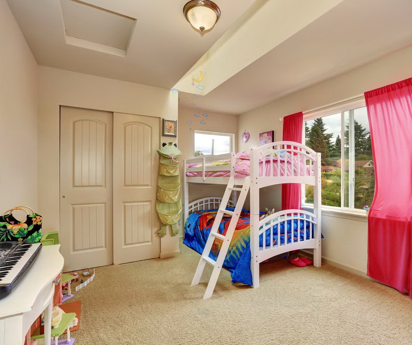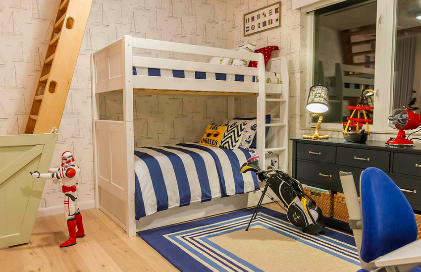 Łóżka piętrowe znajdują zastosowanie nie tylko w małych sypialniach, często są instalowane w dość przestronnych pomieszczeniach.