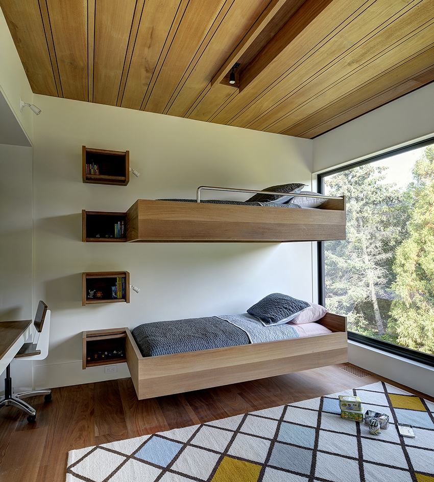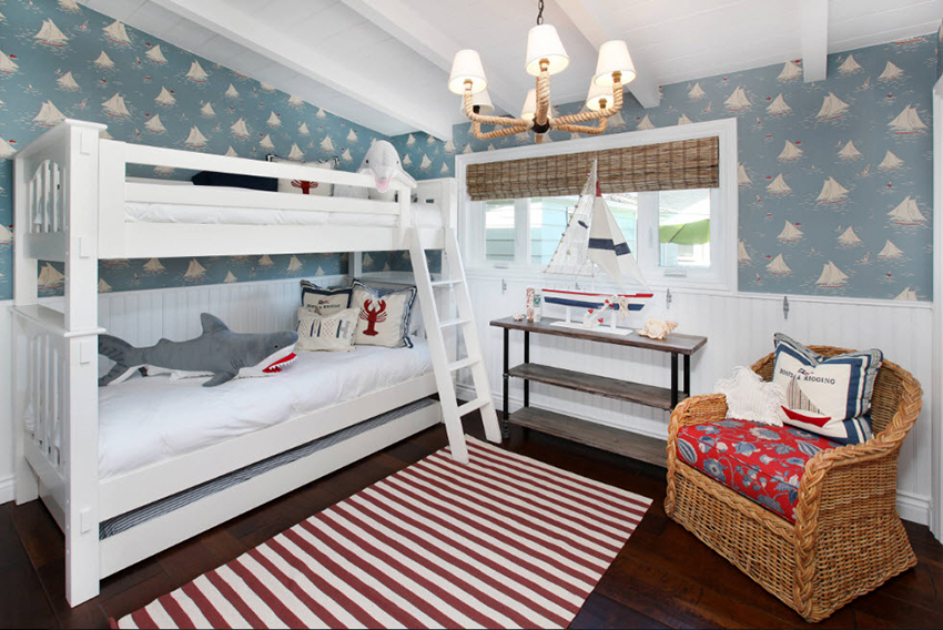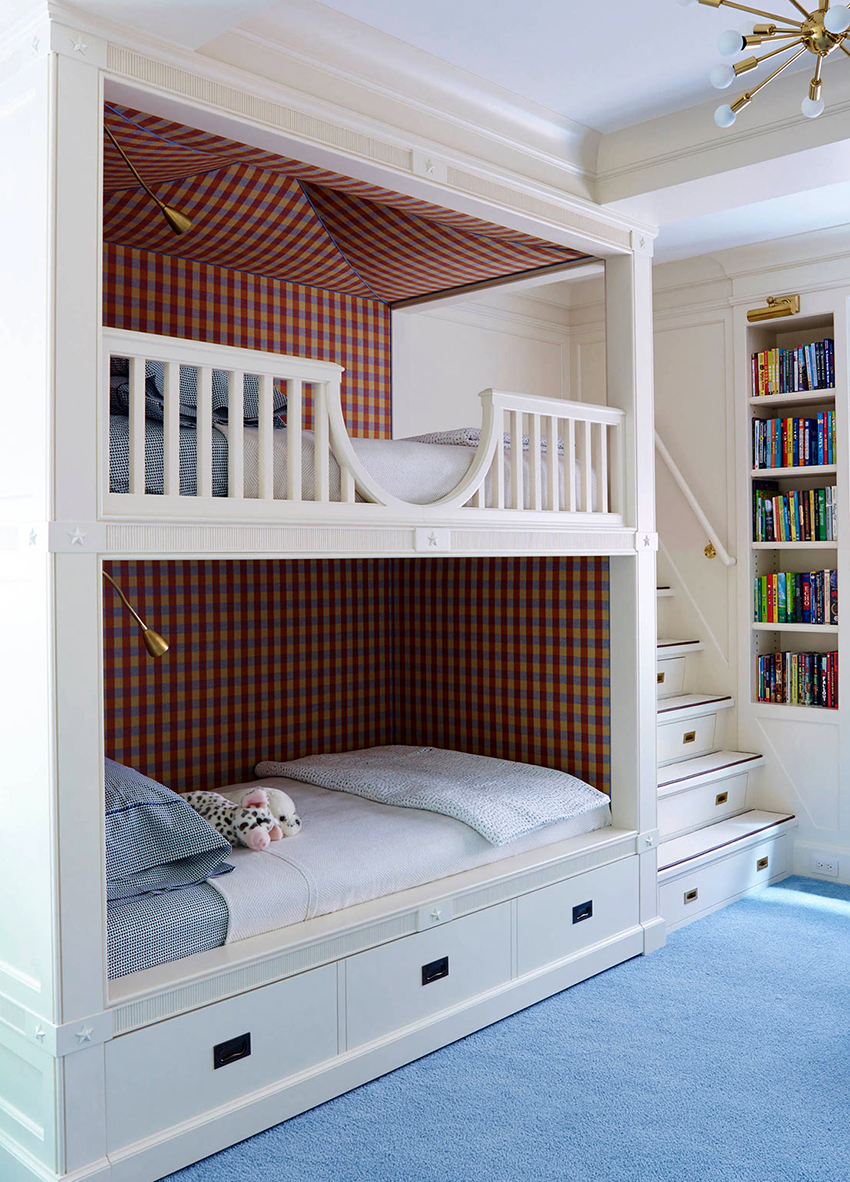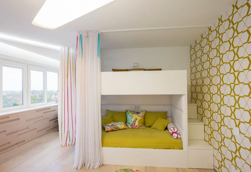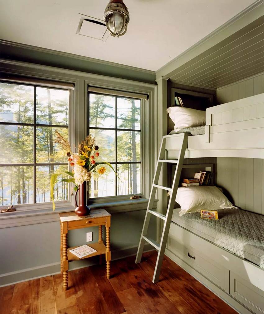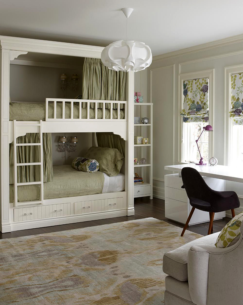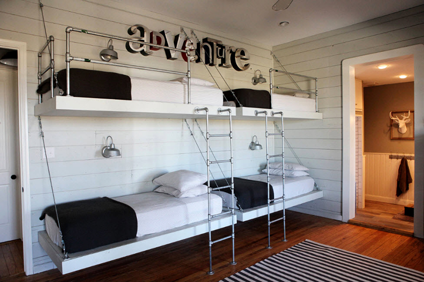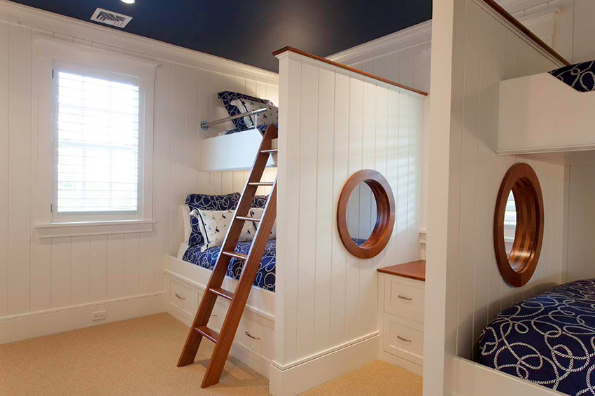 Łóżka piętrowe znajdują zastosowanie nie tylko w małych sypialniach, często są instalowane w dość przestronnych pomieszczeniach.