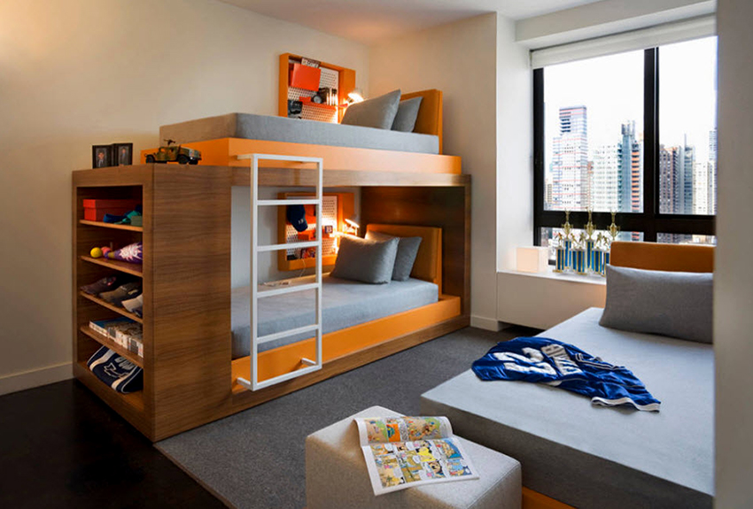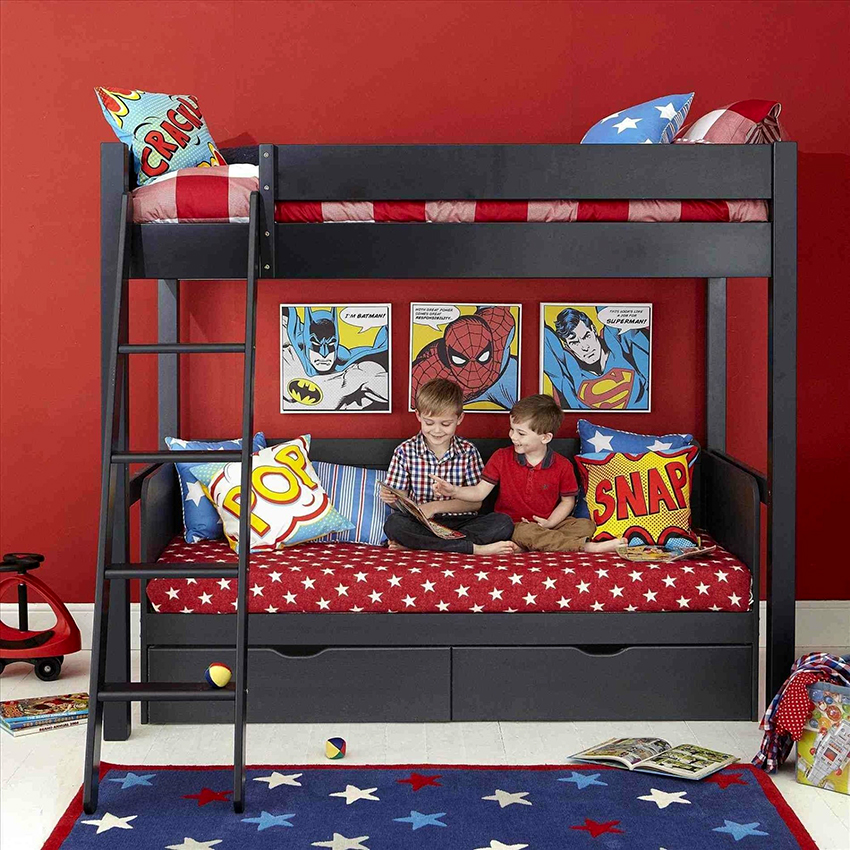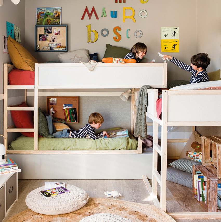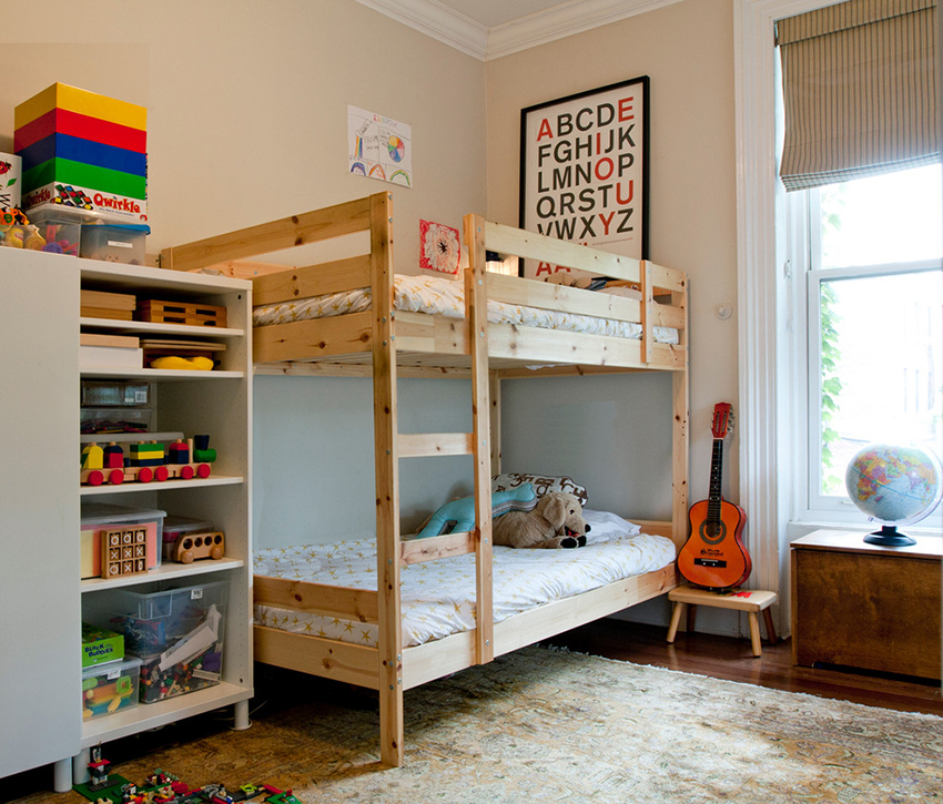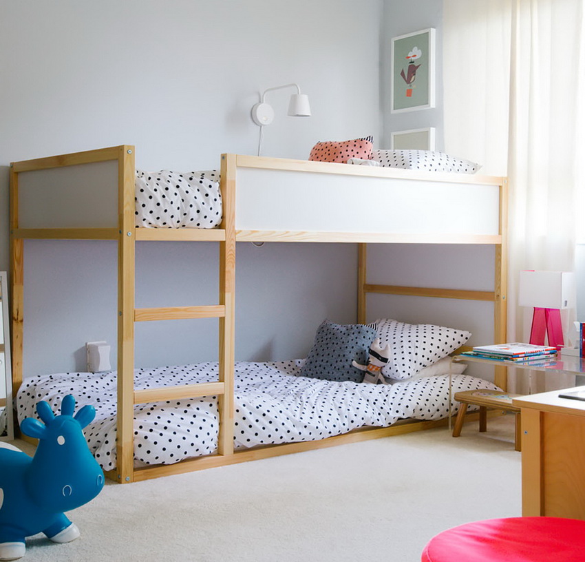 Udanym modelem jest rozkładane łóżko piętrowe, w którym dolne piętro zamienia się w podwójne łóżko, które jest wygodne dla dzieci tej samej płci.