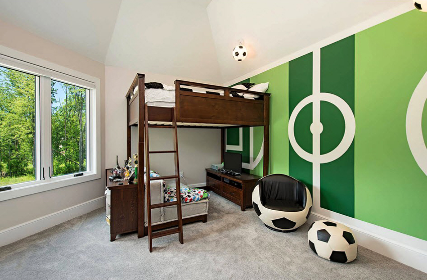 Na otwartym terenie często wyposażają kącik na żywo lub kącik sportowy. Bok łóżka można wykorzystać do uporządkowania drabinek, na których dziecko może wykonywać poranne ćwiczenia.
