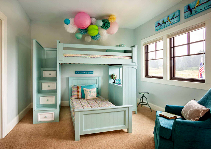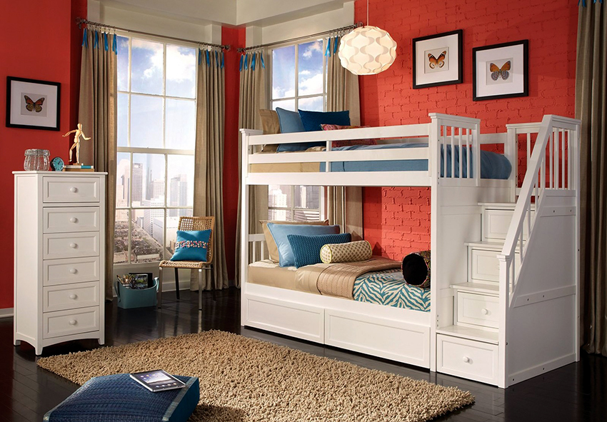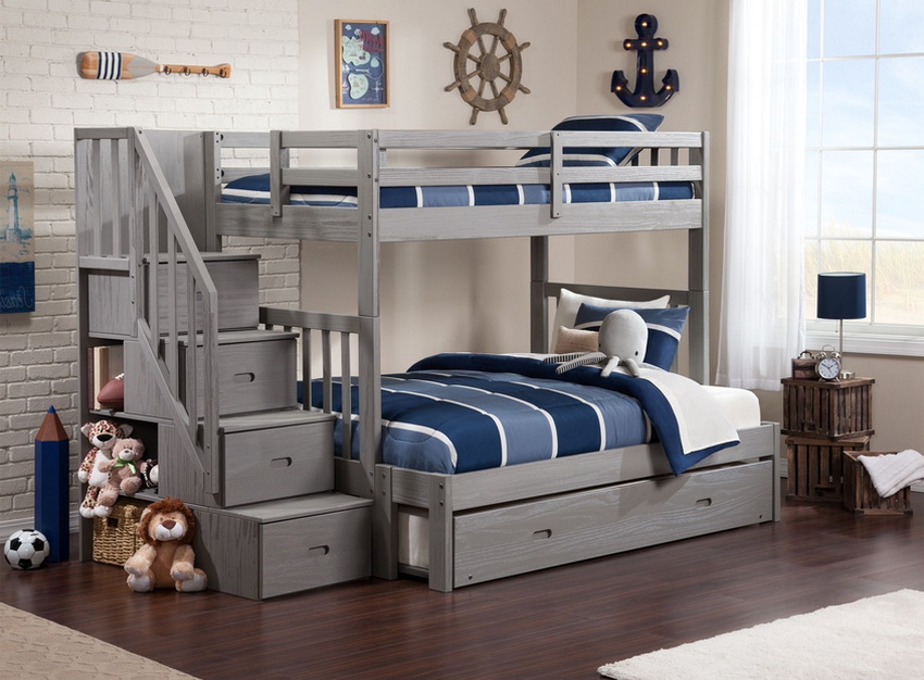 Jedną z głównych zalet łóżek piętrowych dla dzieci (zdjęcie wyraźnie to potwierdza) jest różnorodność typów konstrukcji. Spośród istniejących modeli można wybrać opcję idealną, zgodną z wyobrażeniami dziecka na temat przestrzeni osobistej i wymaganiami rodziców.