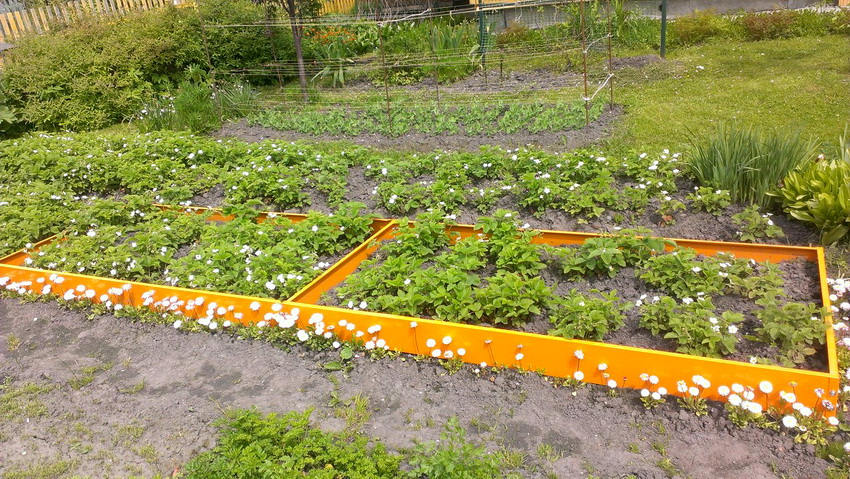 - na ocynkowanych stalowych ogrodzeniach łóżka można zainstalować łuki, aby zorganizować szklarnię, a także rurę, która zapewnia nawadnianie kroplowe rośliny.