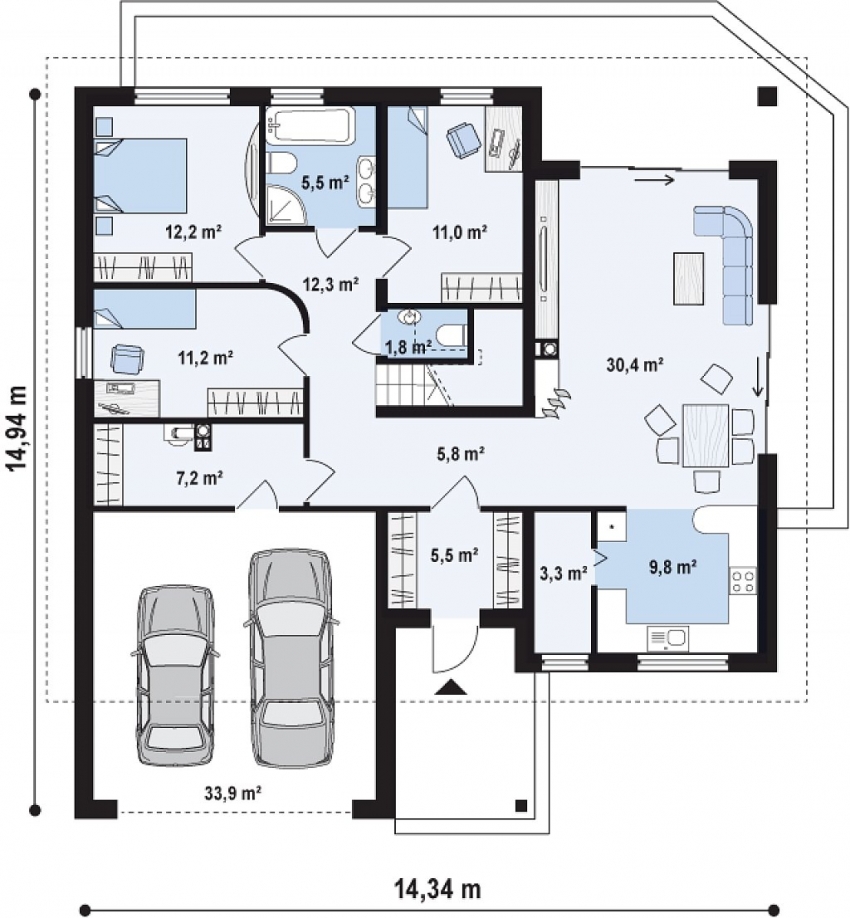 - 4 Domy z garażem na 2 samochody: projekty, plany i cechy konstrukcyjne