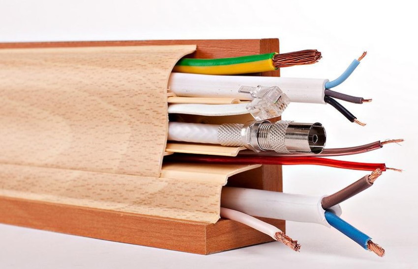 Nota! Os rodapés com canal de cabo permitem evitar que a parede fique presa ao instalar a fiação elétrica. Assim, o trabalho de instalação é muito simplificado. Além disso, não há necessidade do uso de ferramentas especializadas, remoção de entulhos e restauração de paredes.