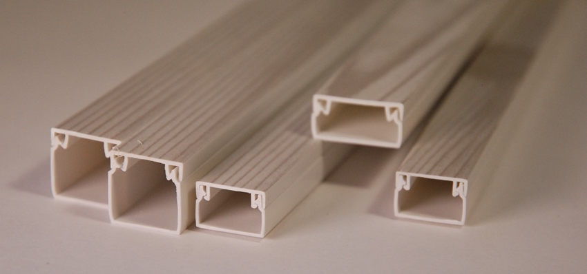 Os canais de cabo diferem uns dos outros não apenas pelo material de fabricação, mas também pela configuração e tamanho. Existem produtos incomuns à venda, por exemplo, de ligas de alumínio ou plástico transparente.